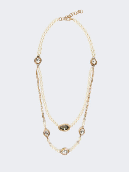 Collier orné de perles et de strass – BLANC OPTIQUE