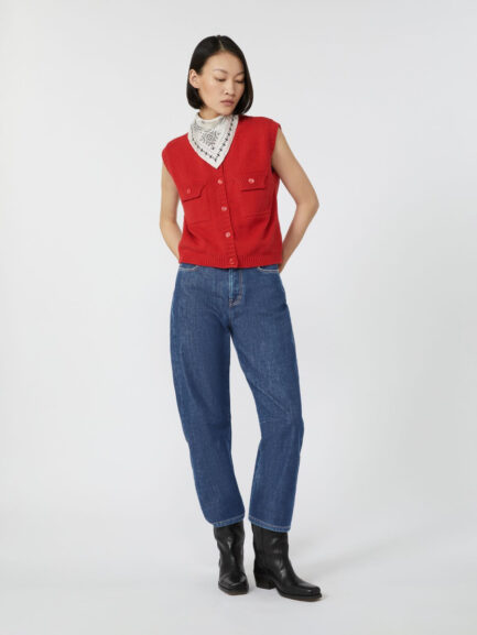 Gilet en fil de coton mélangé – ROUGE