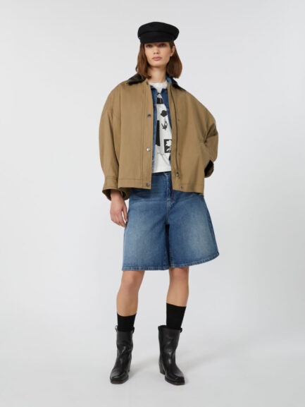 Veste en denim de coton coupe droite – IVOIRE