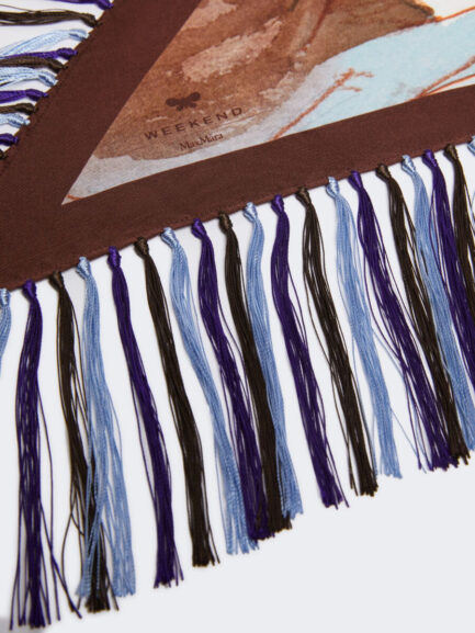 Foulard en soie imprimée à franges – MARRON ORANGE