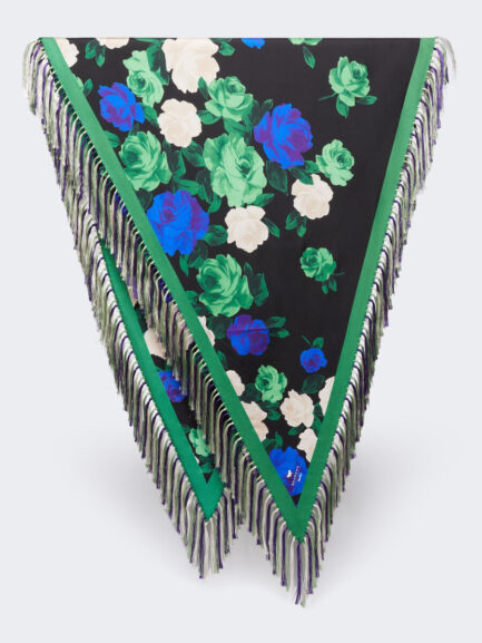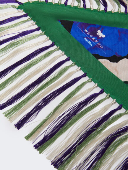 Foulard en soie imprimée à franges – VERT FONCÉ