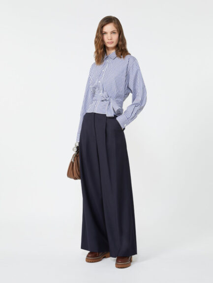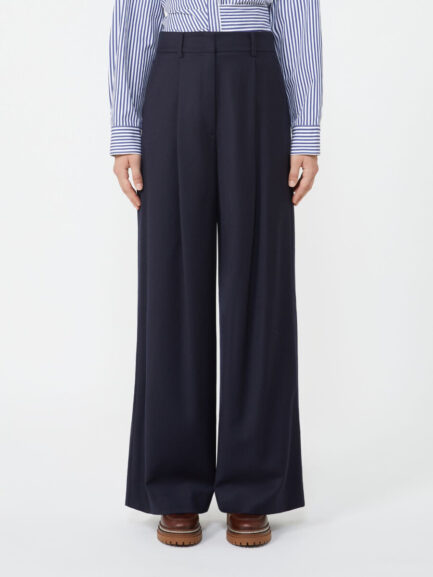 Pantalon palazzo en flanelle de laine – BLEU MARINE