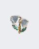 Broche en forme de fleur composée de strass de formes et de tailles variées.