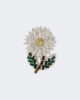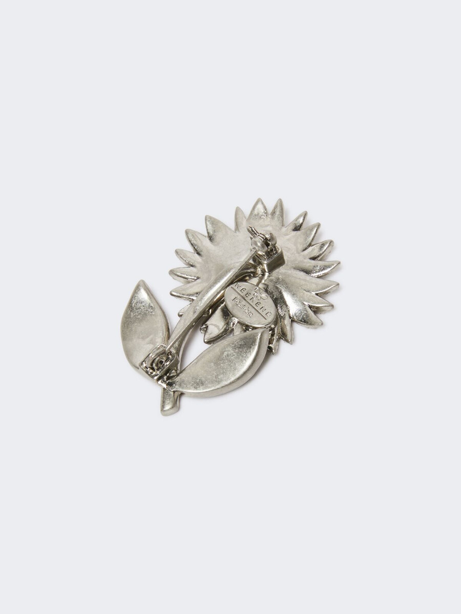 Broche en forme de fleur composée de strass de formes et de tailles variées.