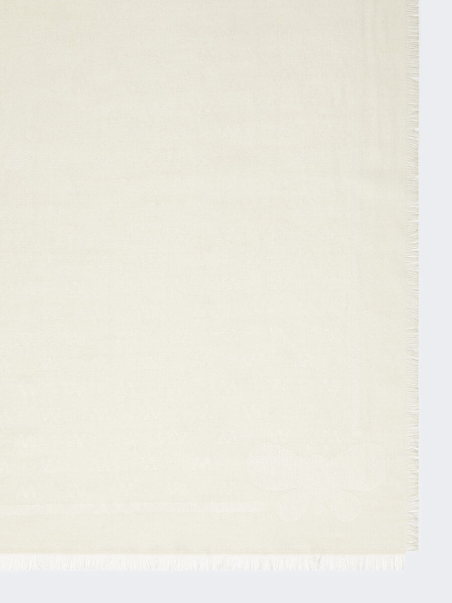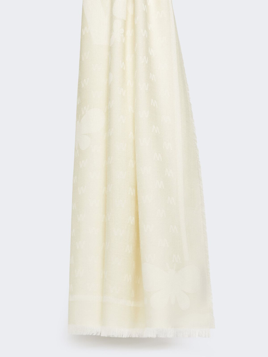 Châle ample orné d’un motif jacquard formant des papillons sur un fond rehaussé d’un logo « W » miniature.