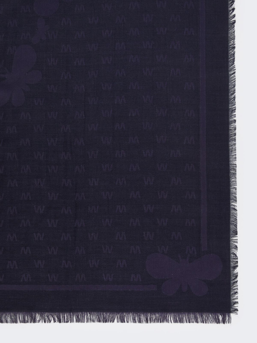 Châle ample orné d’un motif jacquard formant des papillons sur un fond rehaussé d’un logo « W » miniature.