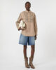 - Manches longues à épaules tombantes et double boutonnage aux poignets