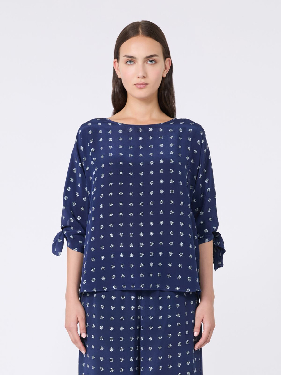 Blouse légèrement évasée avec détail de lien aux poignets.