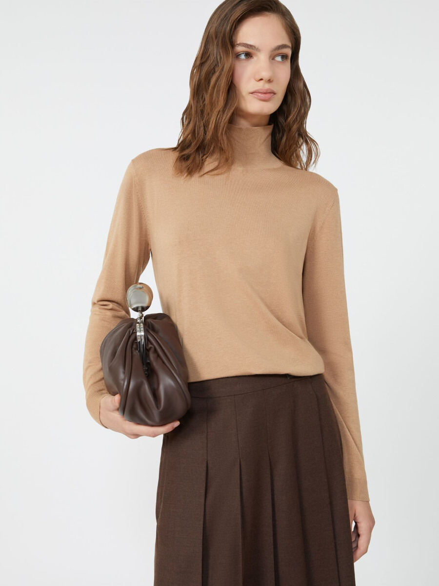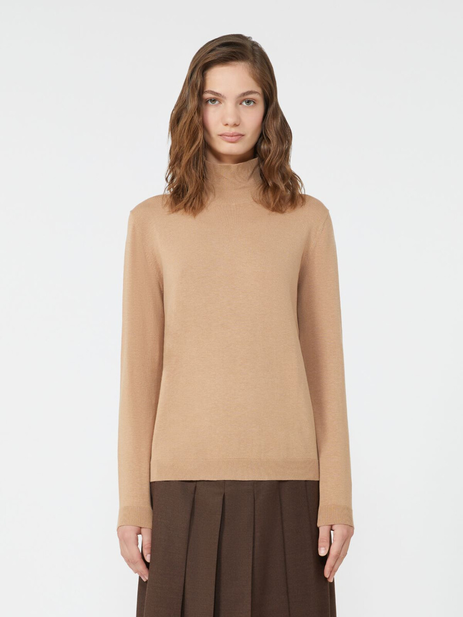 Pull à col roulé en maille unie.