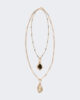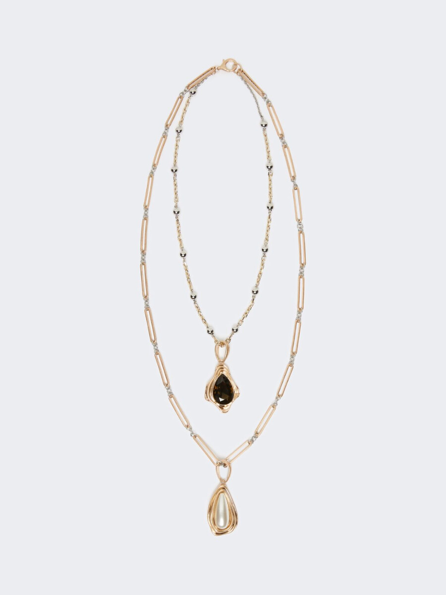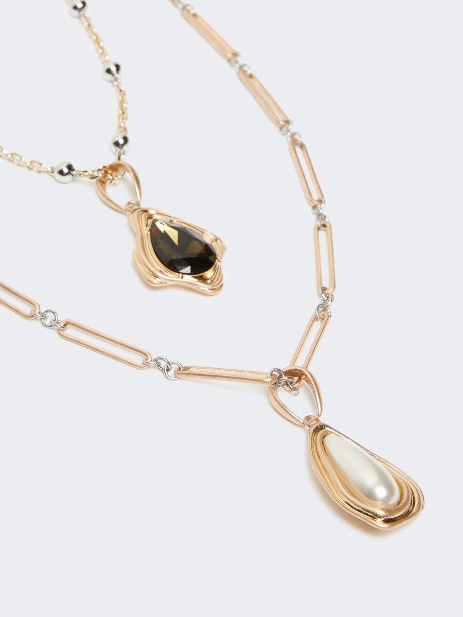 Collier double rang en métal avec détails en résine. Fermoir mousqueton au dos.
