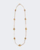 Collier long composé de breloques en métal avec un strass maxi serti au centre.