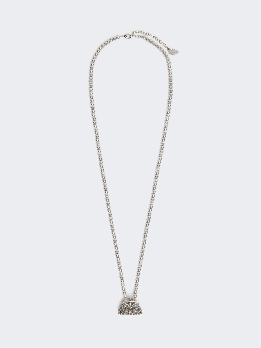 Collier composé d’un rang de perles et d’un pendentif en forme de sachet de pastèque.