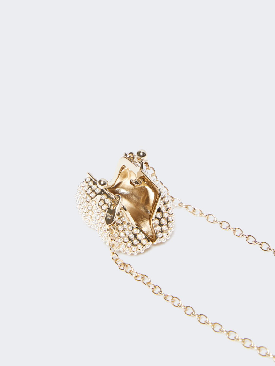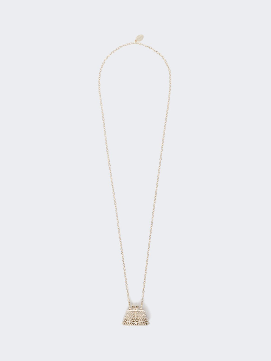 Collier à chaîne orné d’un pendentif en forme de sac Pasticcino, agrémenté de micro-perles.