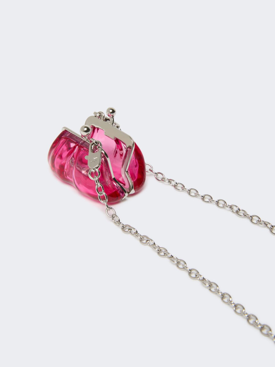 Collier à chaîne longue et fine, orné d’un grand pendentif en forme de sac Pasticcino iconique.