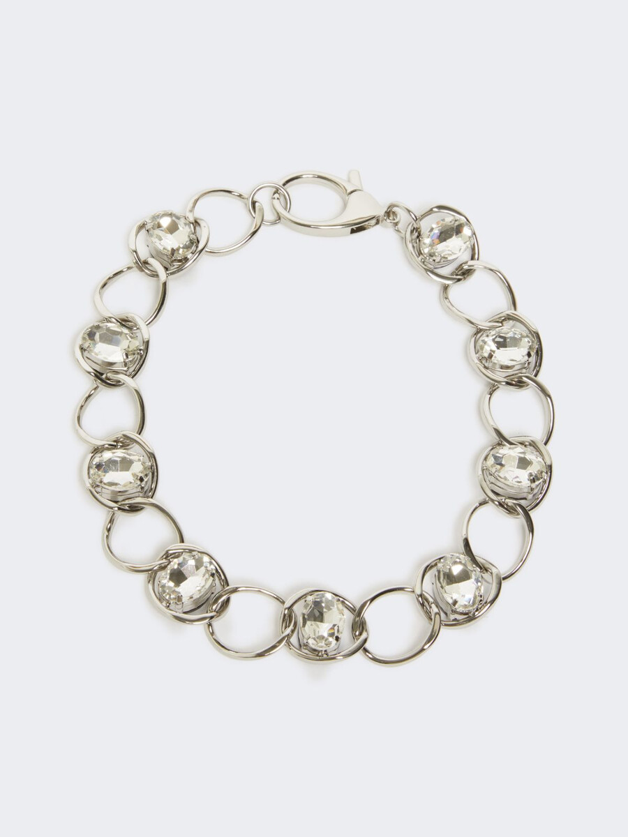 Collier ras du cou composé de chaînes à gros maillons et orné de strass en verre XXL incrustés.