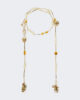 Collier long lariat composé d’éléments en résine de forme irrégulière.