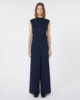 Combinaison sans manches à coupe droite, jambes larges et plis marqués.