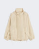 Coupe-vent avec capuche à cordon et rabat anti-pluie au dos.