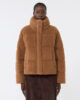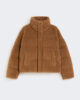 Doudoune courte à simple boutonnage, à la texture douce et à la coupe carrée.