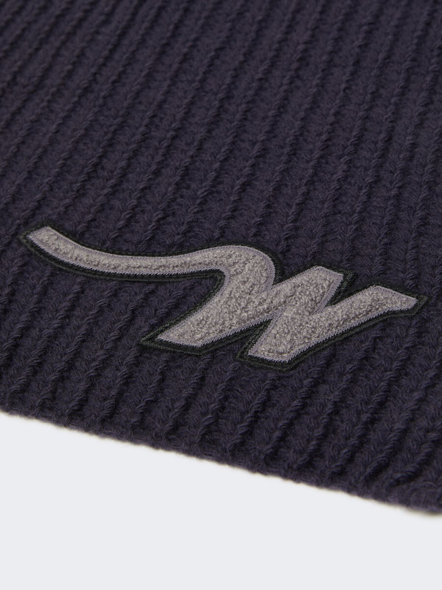 Écharpe longue enveloppante, personnalisée avec un écusson « W » sur l’ourlet.