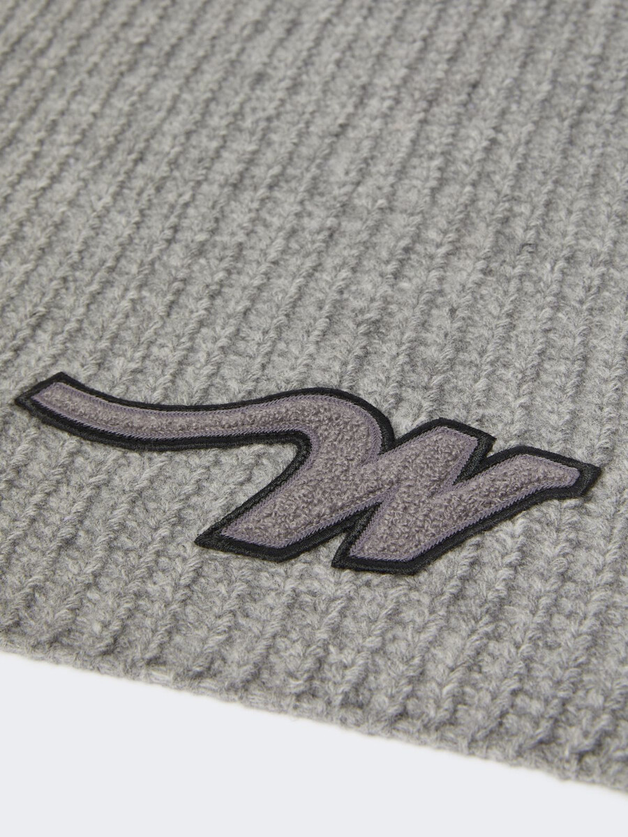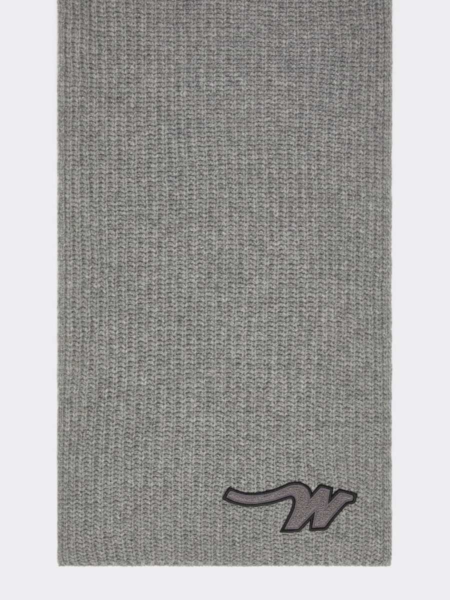Écharpe longue enveloppante, personnalisée avec un écusson « W » sur l’ourlet.