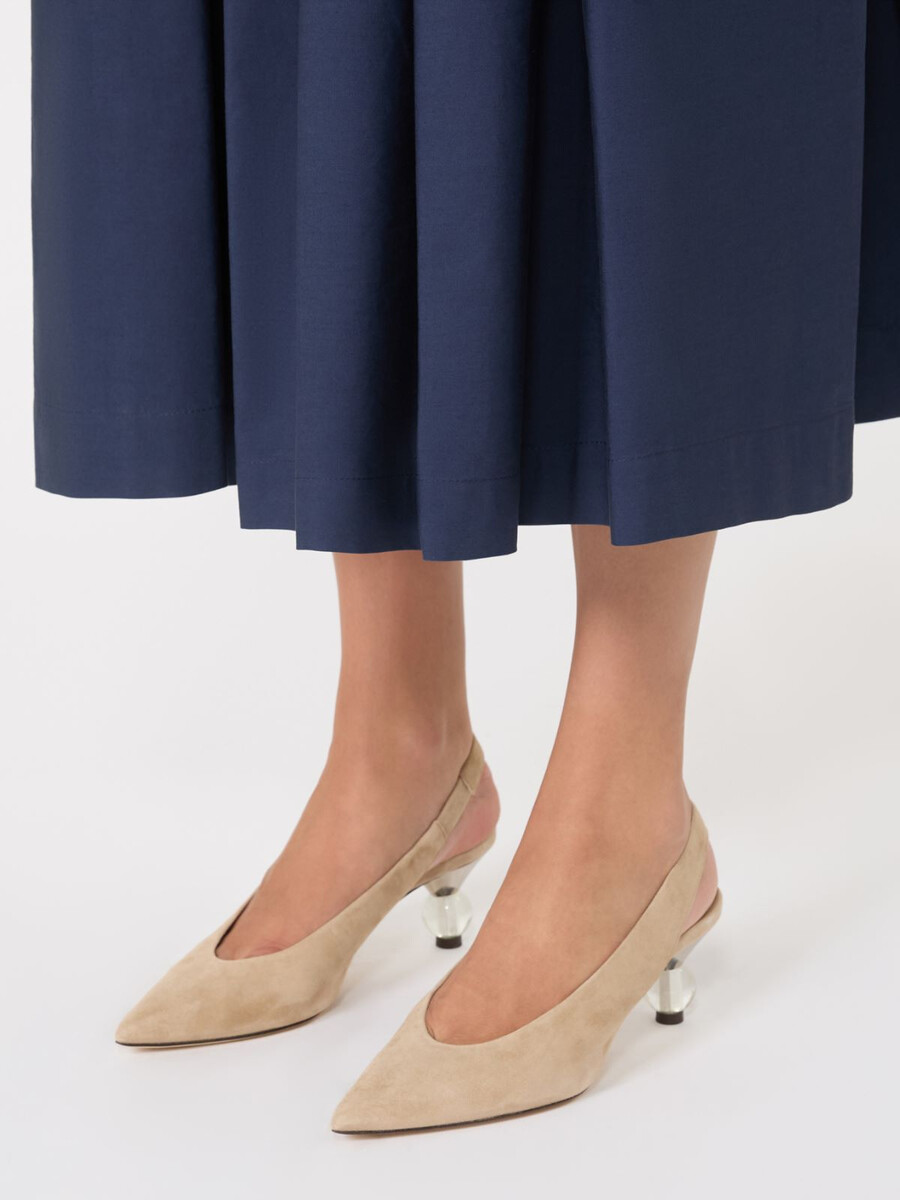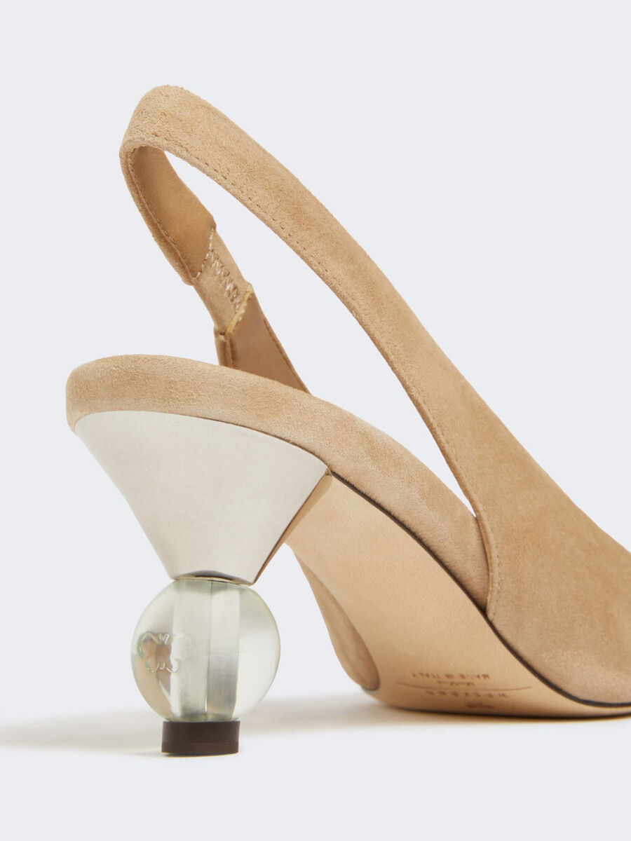Escarpins à bride arrière avec talon sphérique griffé assorti, inspirés de l’emblématique ligne de sacs Pasticcino. Un design exclusif pour un maintien optimal.