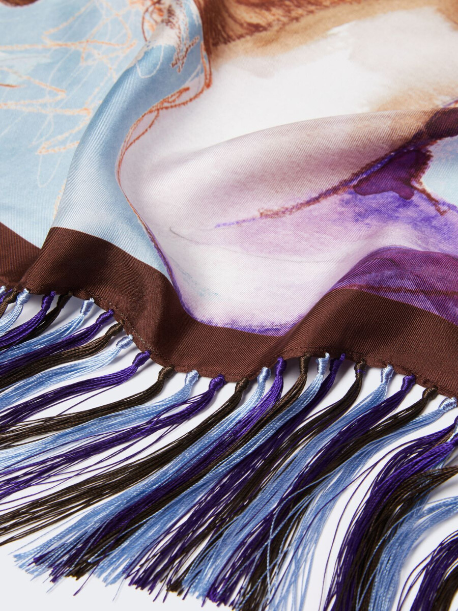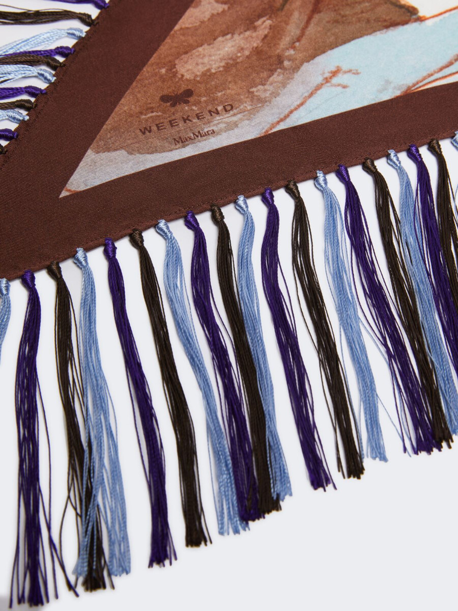 Écharpe en forme de losange ornée d’un imprimé intégral inspiré de l’Espagne, issu de la collection.