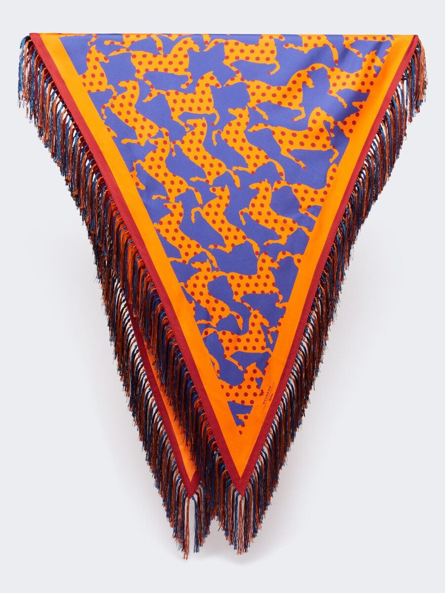Écharpe en forme de losange ornée d’un imprimé intégral inspiré de l’Espagne, issu de la collection.