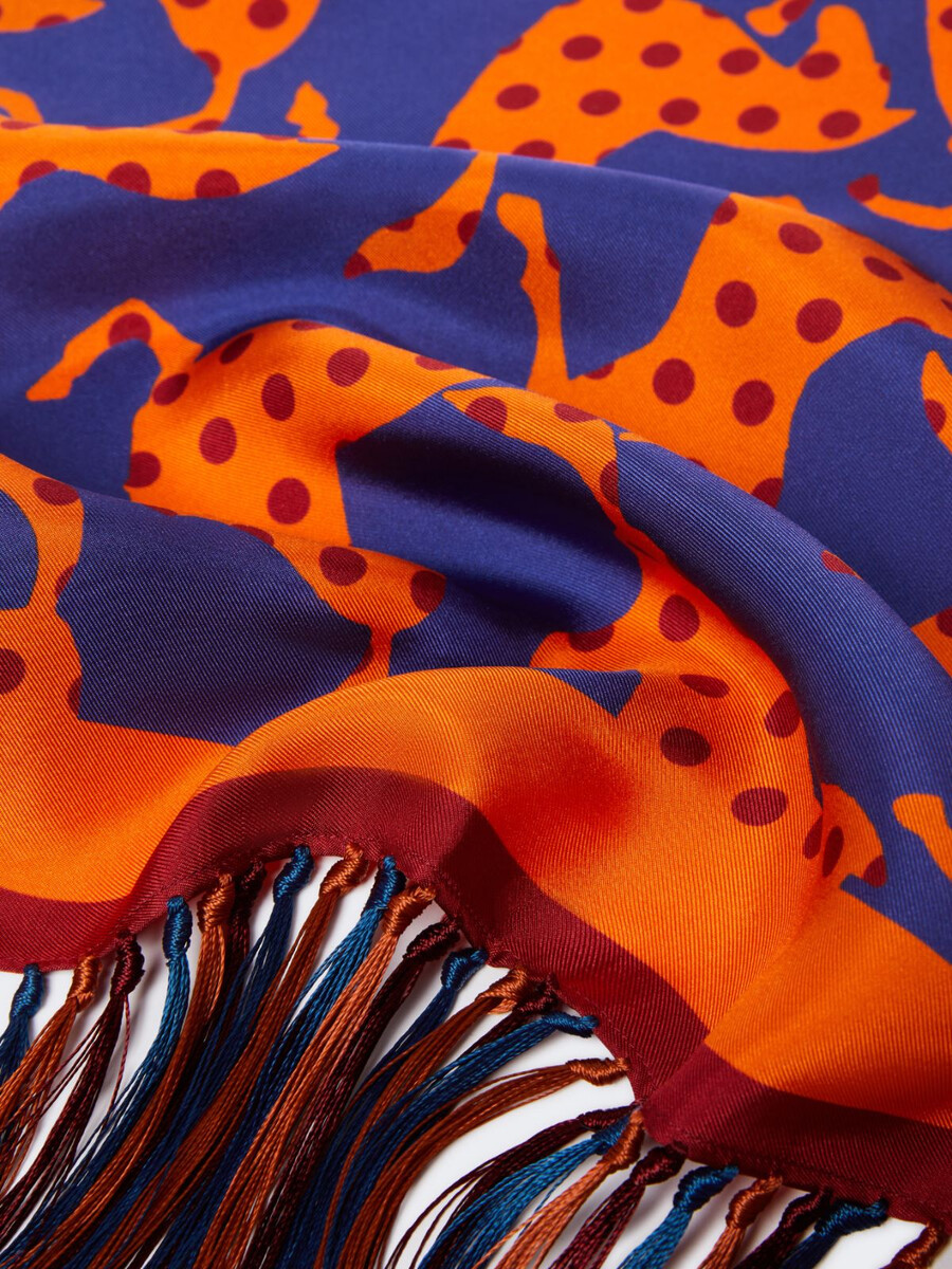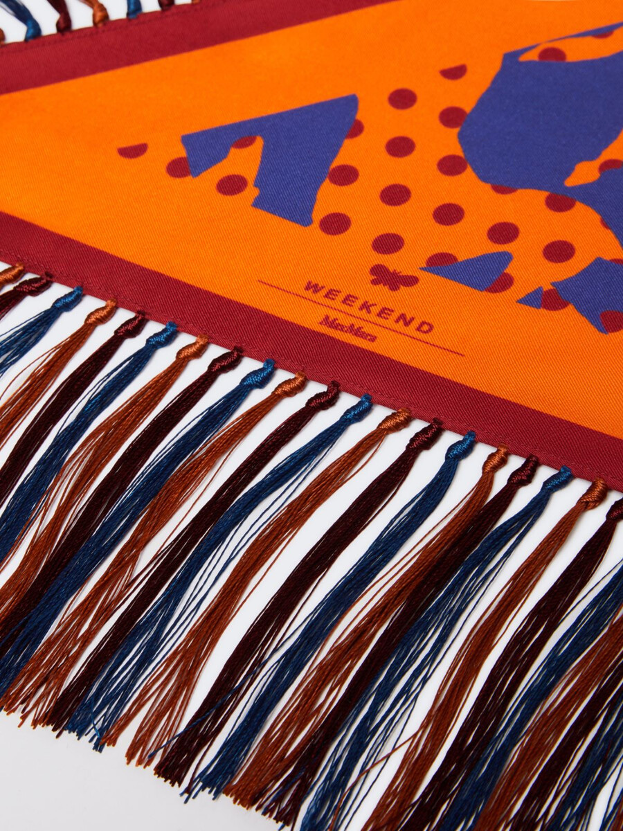 Foulard en soie imprimée à franges – MARRON ORANGE