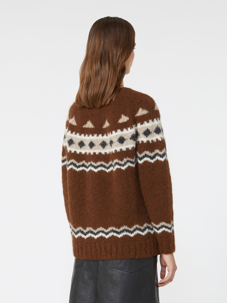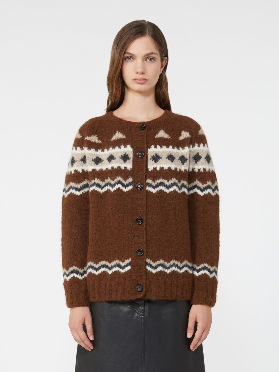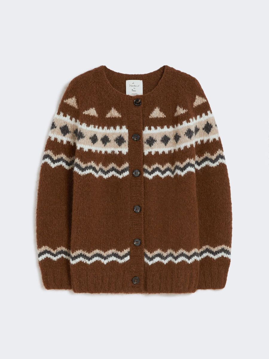 Cardigan en alpaga tricoté main : une collection capsule célébrant la tradition artisanale péruvienne, mise en avant par PromPerù et Weekend Max Mara design.
