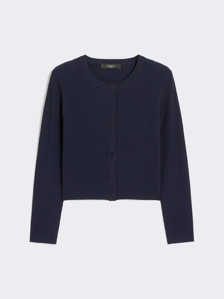 Cardigan en maille côtelée courte à la taille.