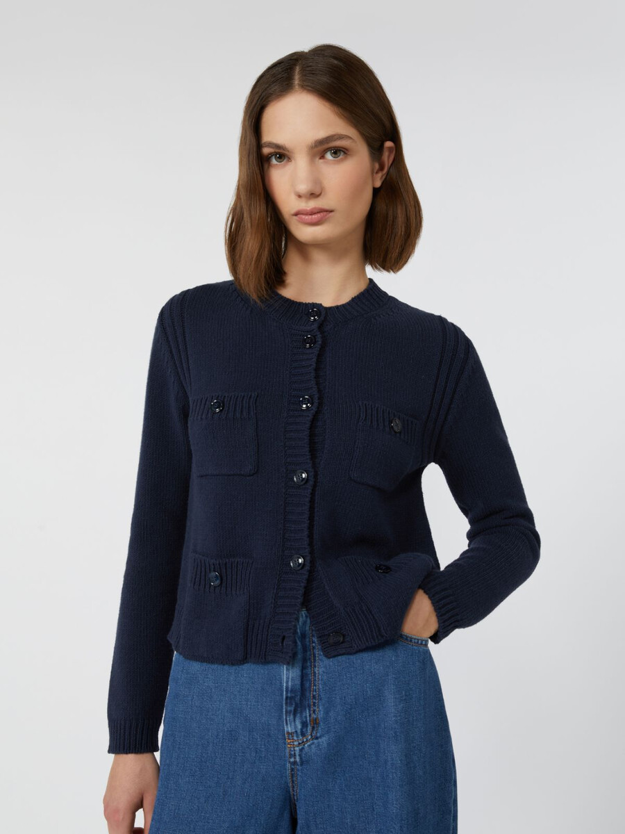 Cardigan à quatre poches plaquées sur le devant et boutons en nacre.