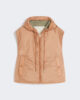 Gilet court à capuche avec cordon de serrage et rembourrage Luxepad Ultra Fine Insulating Technology, édition Camel-Silk Blend.