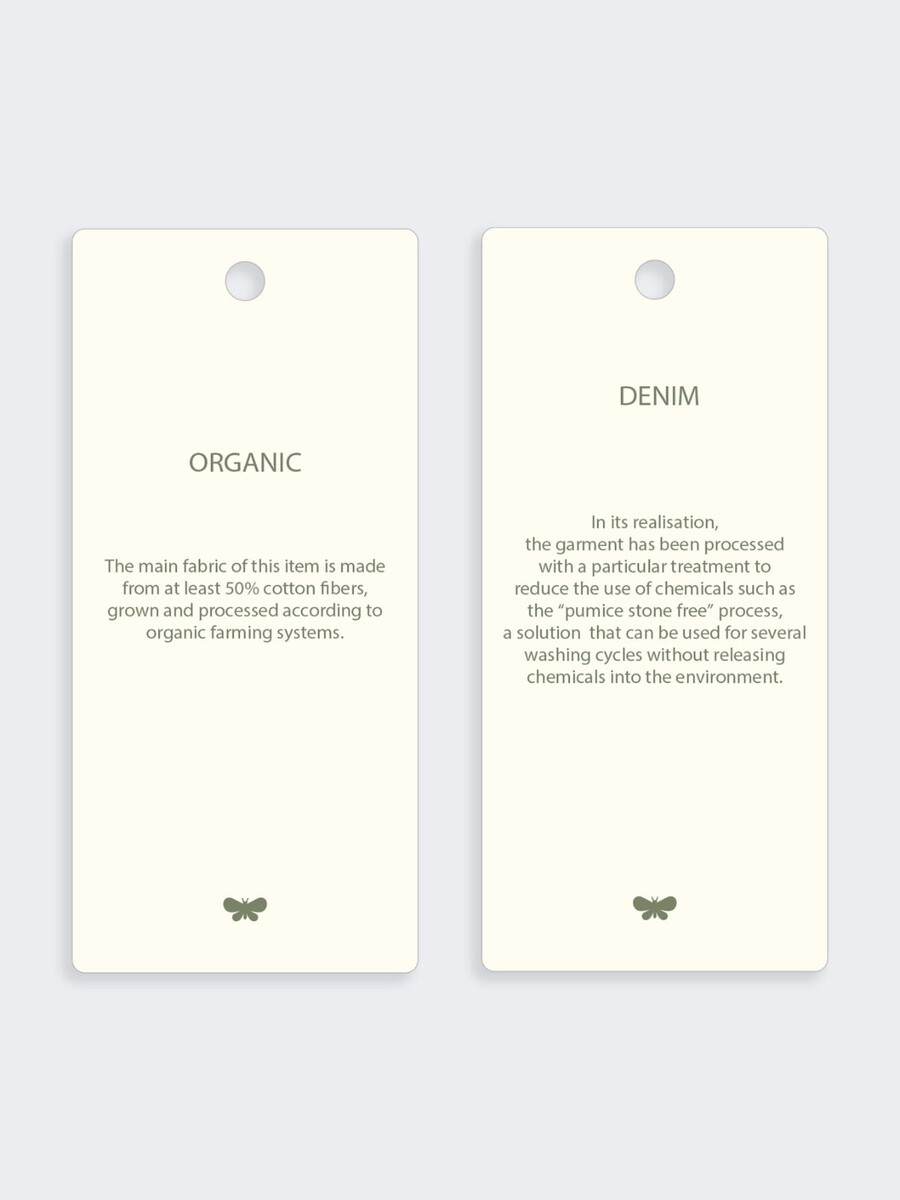 - Tissu principal composé d’au moins 50 % de fibres de coton issues de l’agriculture biologique.