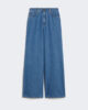 Jean cinq poches à jambes larges, orné d’une étiquette logo papillon sur la poche arrière droite.