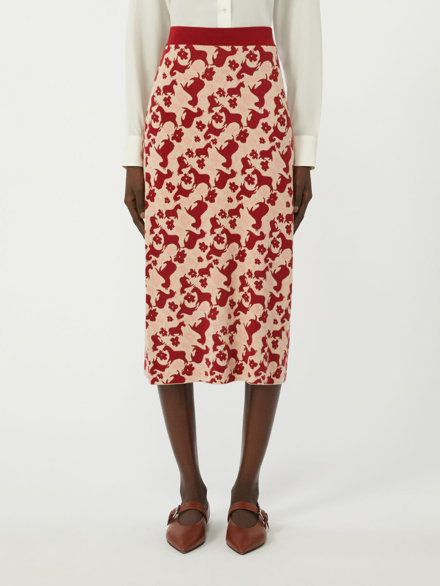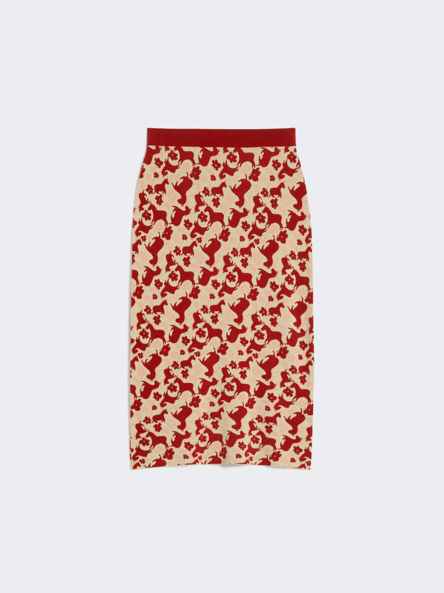 Jupe crayon midi ornée d’un jacquard sur toute la surface.