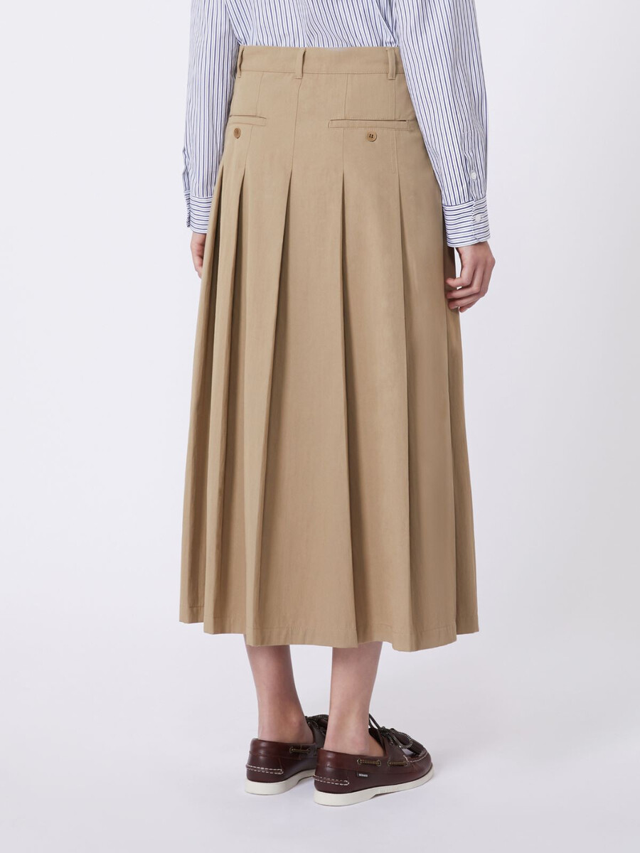 Jupe midi trapèze ornée de plis sur le devant et le dos.
