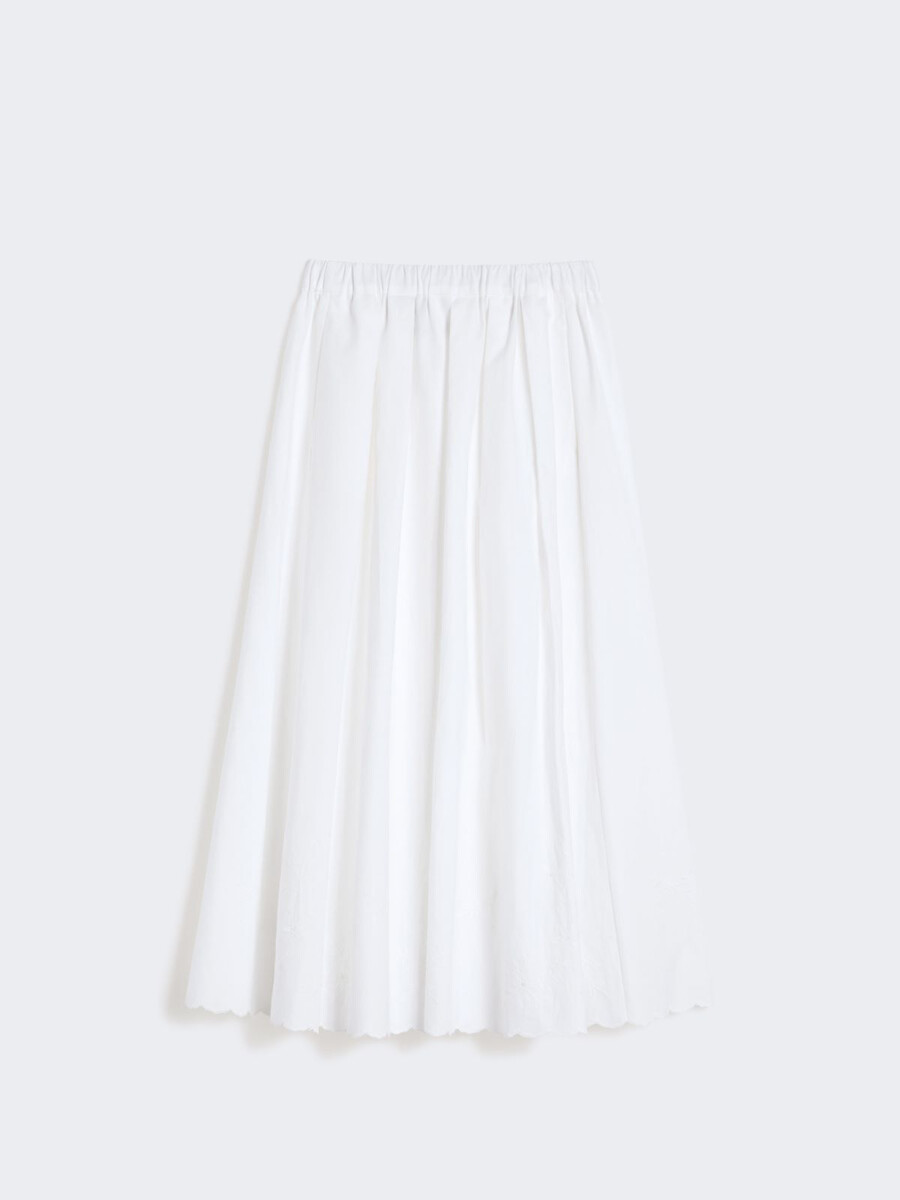 Jupe longue trapèze, ornée de broderies ajourées à l’ourlet et d’un bord festonné.