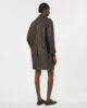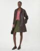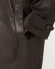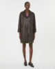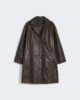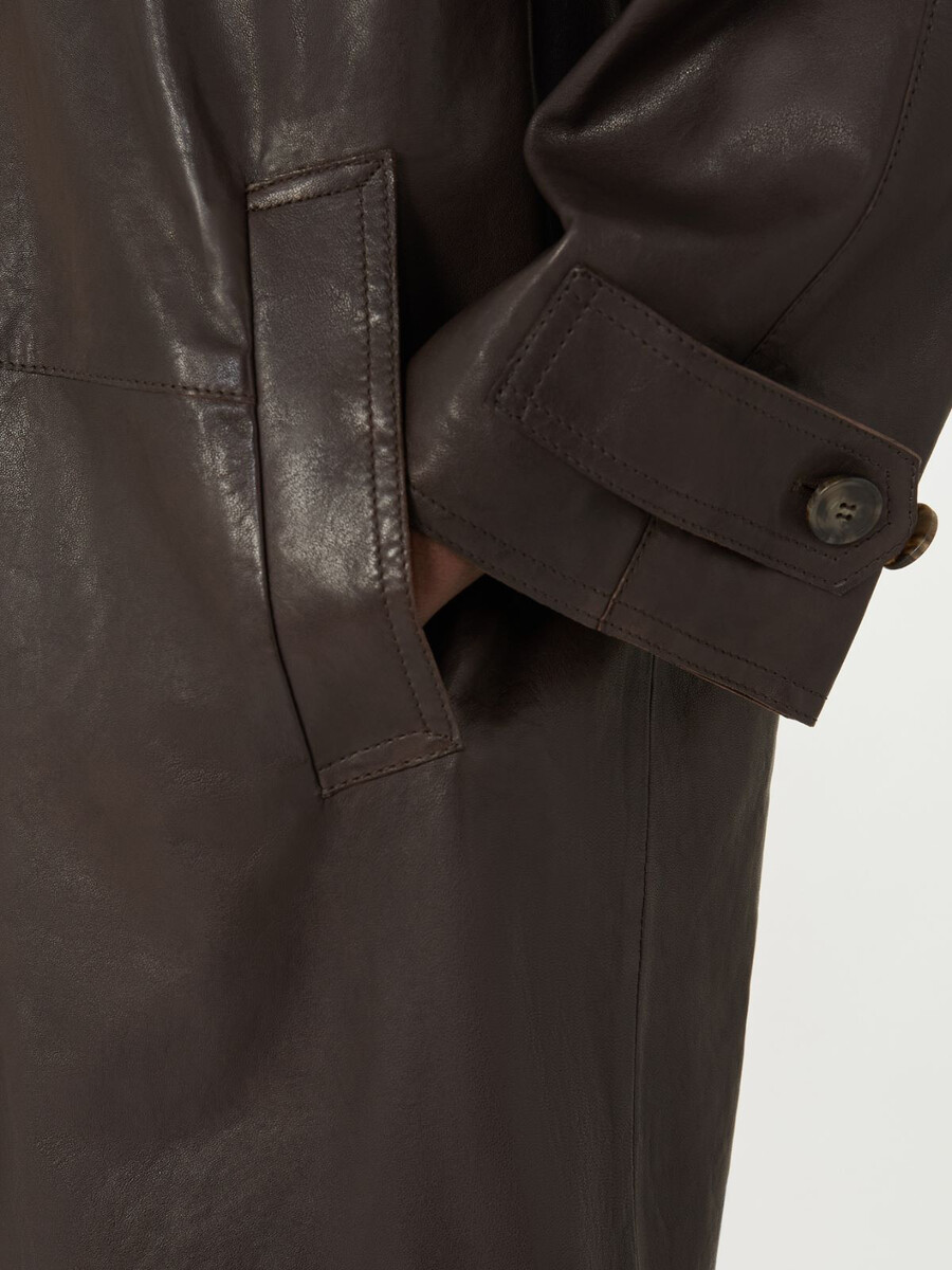 Manteau mi-long à simple boutonnage, orné de pinces et de surpiqûres façon maroquinerie.