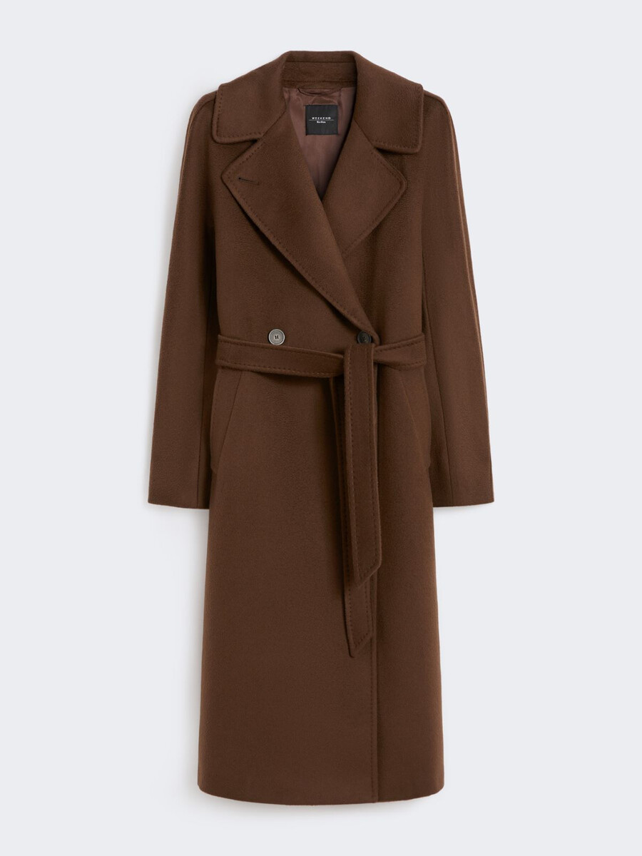 Manteau midi cintré avec ceinture assortie à nouer à la taille.