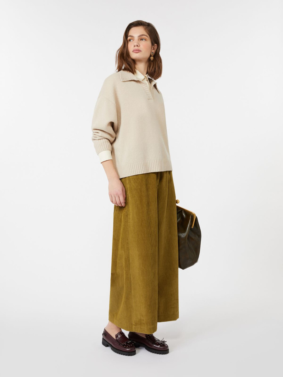 Pantalon large à cinq poches et coupe cheville raccourcie.