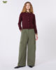 - Jambes larges avec pinces à la taille.