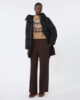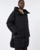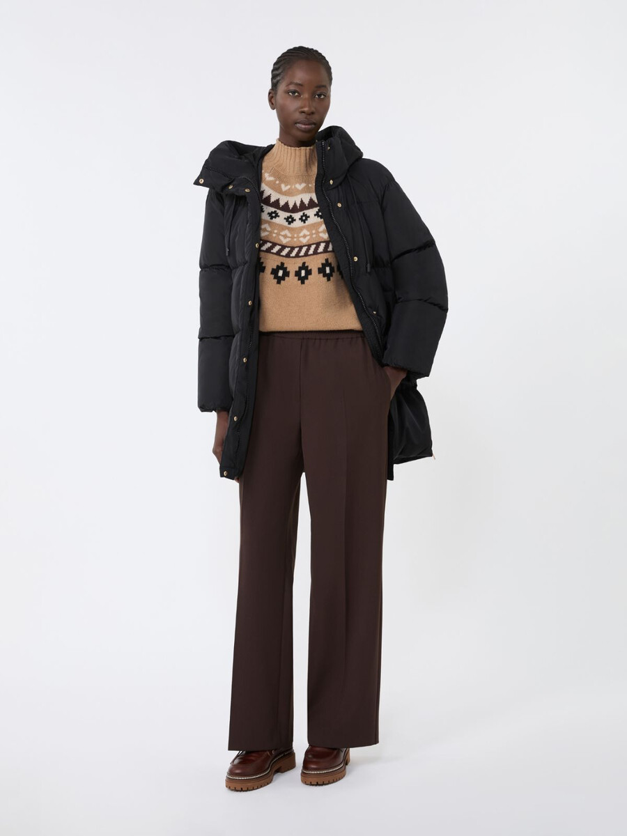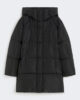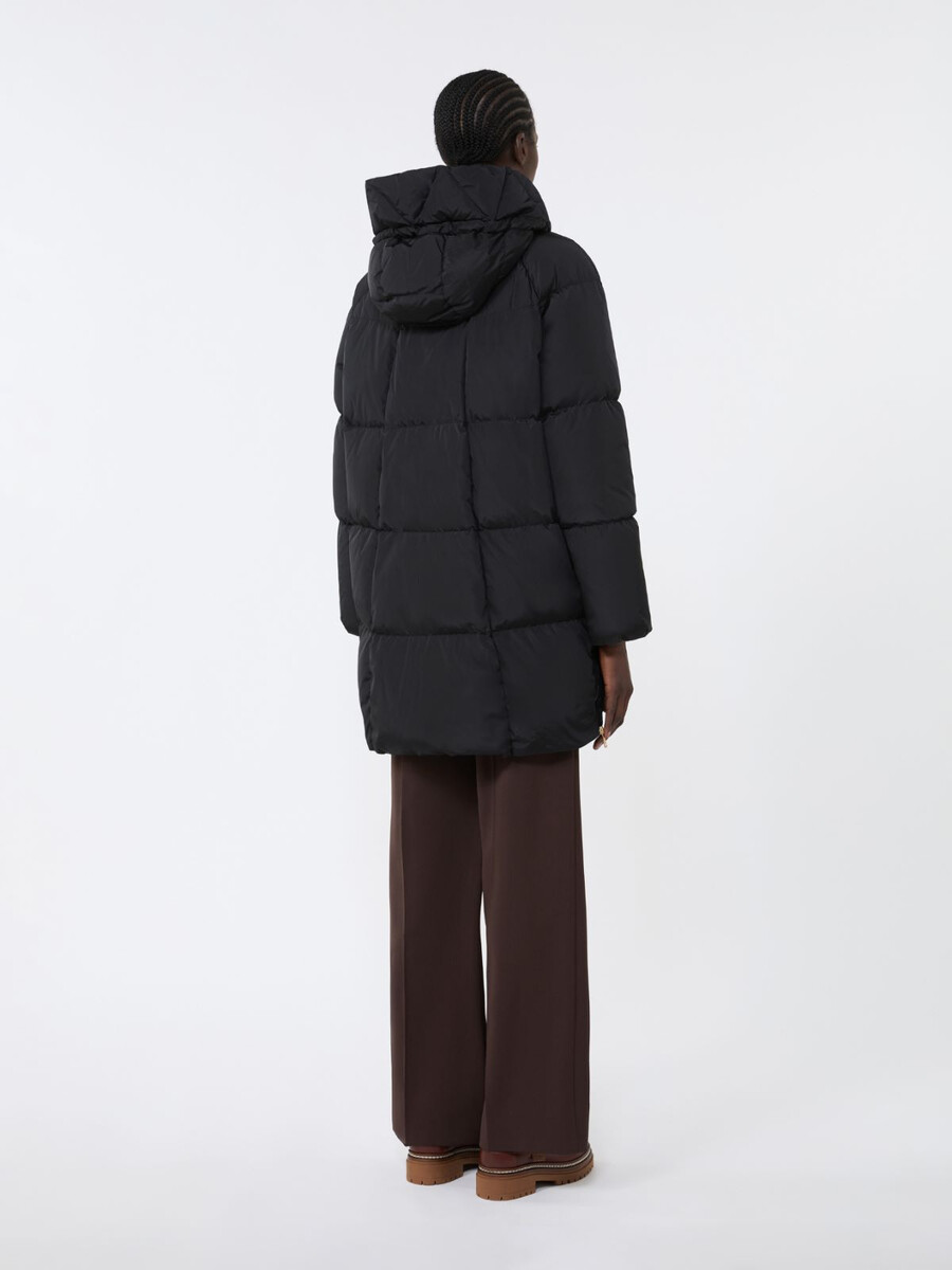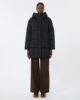 Parka midi à capuche à cordon et motif matelassé à rayures horizontales.