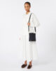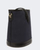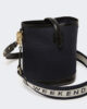 Petit sac seau à base ovale inspirée des années 70/80. Sa bandoulière amovible en cuir, réglable par fermoir, permet un porté épaule ou croisé.