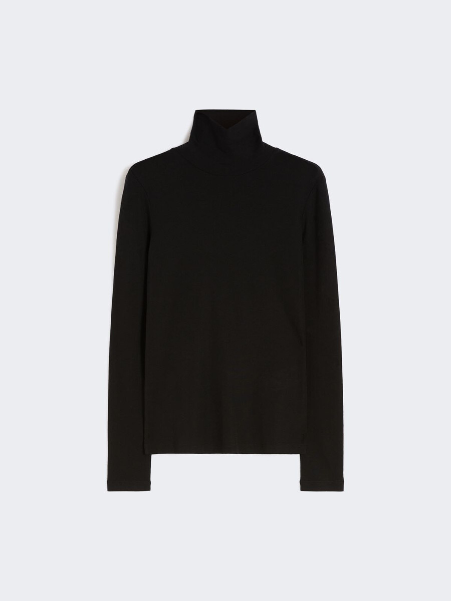 Pull à col roulé en gaze de laine et de soie – NOIR