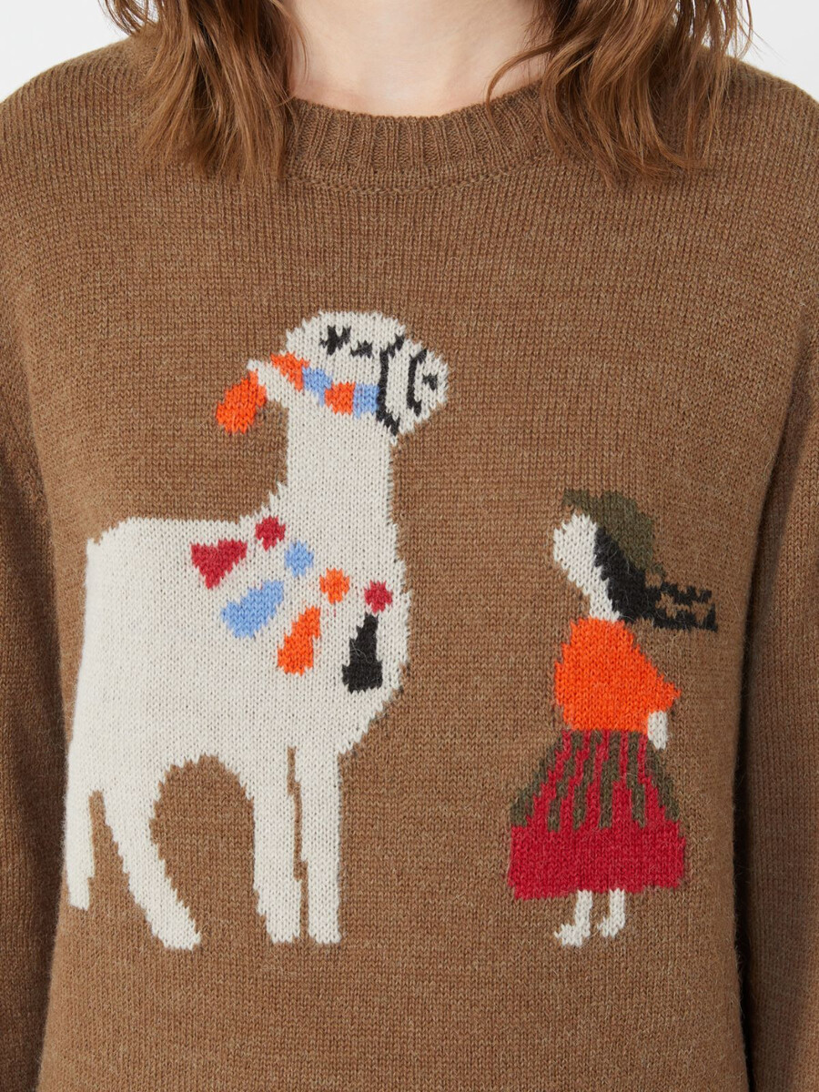 Pull à col rond, orné d’un motif intarsia exclusif sur le devant.