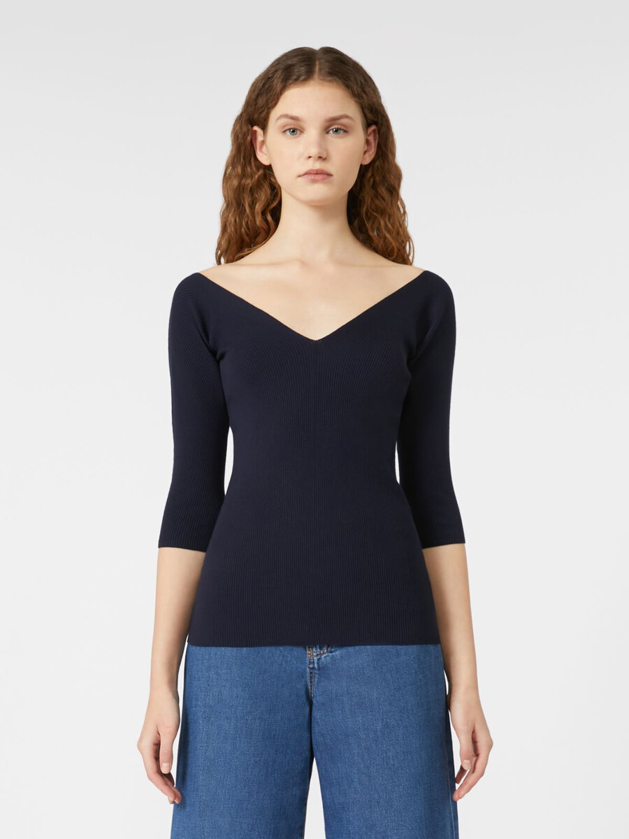 Pull ajusté à maille côtelée mettant en valeur la silhouette.