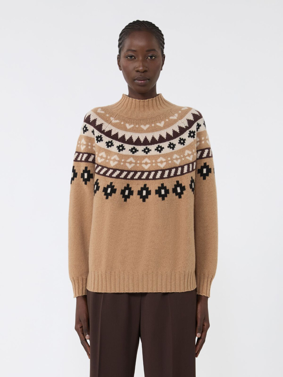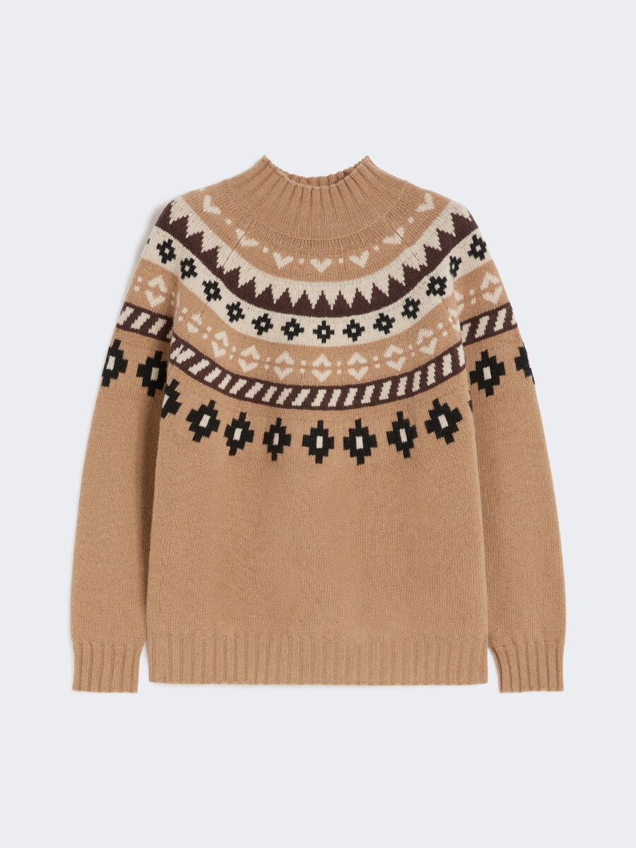Pull en maille jacquard à motif contrastant sur toute l’empiècement.
