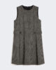 Robe courte sans manches à plis sur le côté et ceinture martingale au dos avec boutons sur les côtés.