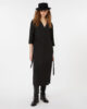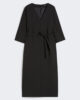 Robe en pur laine à col V, manches ¾ et poches latérales intégrées. Ceinture assortie soulignant la taille. Coupe droite.